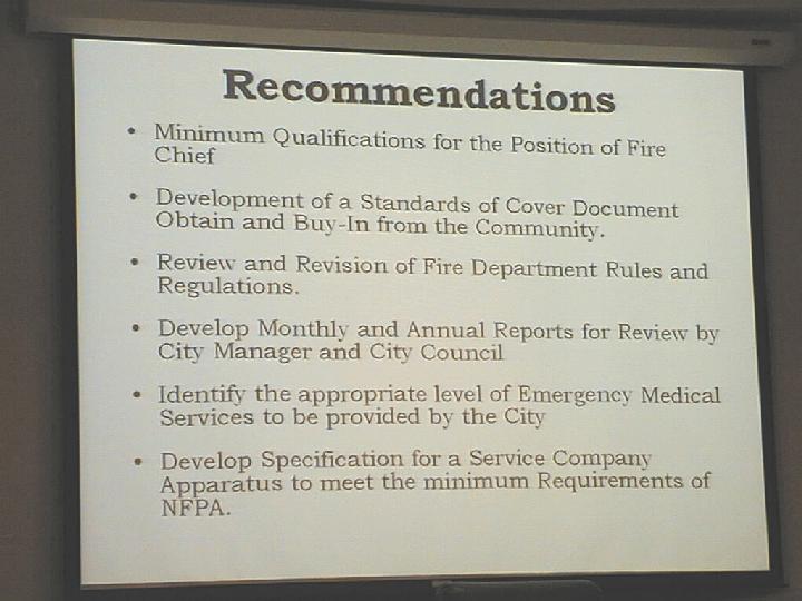 the July 27 (sic) City Council meeting, the draft fire study was presented to