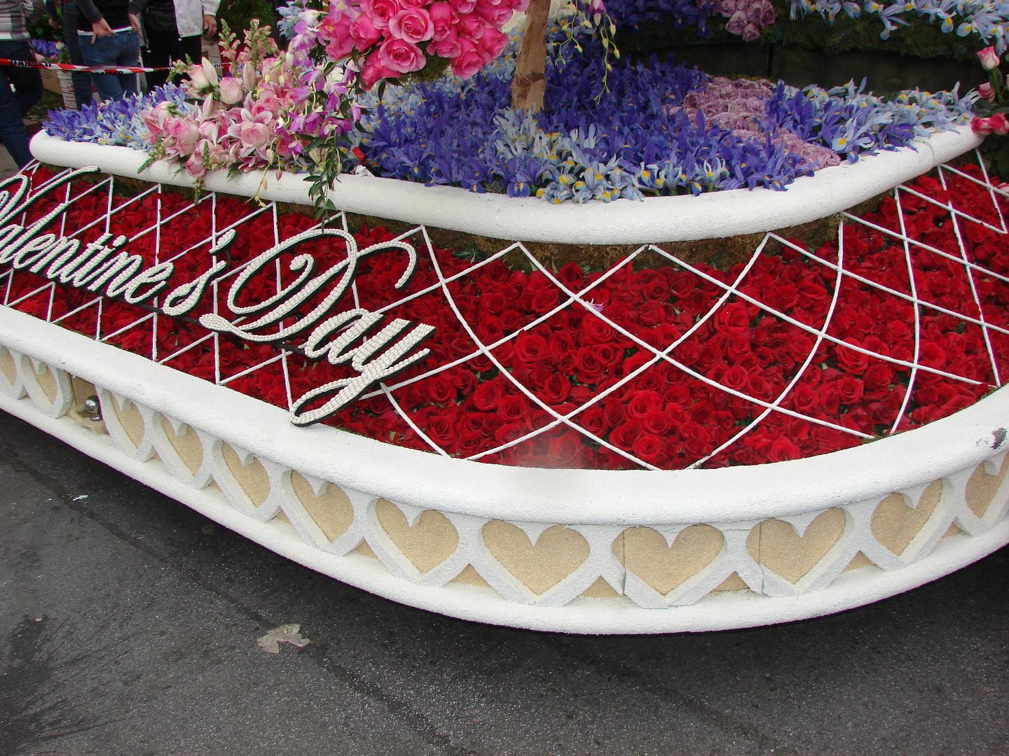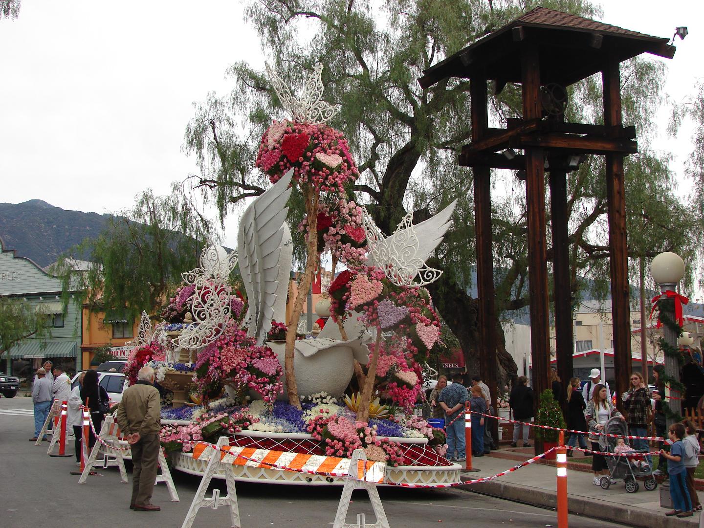 After a day with the other floats at Victory Park, the Sierra Madre float has the shortest trip home. It stops at Kersting Court for a day on the way to the barn, so residents can enjoy it, and volunteers can answer questions, and sell a few flowers for fundraising. Photos of the Float in Kersting Court