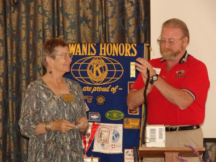 On hand representing Division 35 to induct the upcoming year’s officers was its new Lt. Gov. Dave Wallach. Wallach congratulated the club on it’s a successful eightieth year and then inducted De Alcorn, Jesse Campos, Dr. Paul Neiby and Rev. Dick Anderson to the Board. Following that, he installed officers Pat Birdsall, Treasurer, Secretary Jacki Raymond, Vice-President Susan Henderson and President Harriet Lyle. “I hope we have a great year,” said Lyle, adding “I’m looking forward to it and I’m excited about it.” She also noted that she has some personal goals for the organization, and that she looks forward to hearing what each member’s goals for the group are.