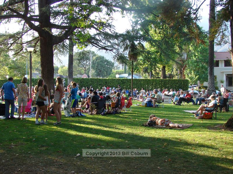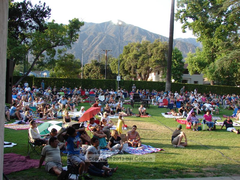 Posted 6/30/13 – The Sierra Madre Volunteer Firefighters’ Association sponsored tonight’s Concert in the Park, featuring a Beatles tribute band called “Hard Day’s Night”. Next week’s concert will feature the Luke Mulholland Band (Blues), sponsored by the Sierra Madre Issei Memorial Foundation. The Summer Concert in the Park series is sponsored by the The Kensington, an Assisted Living Residence. Here are two videos, the first one with music pre-Sgt. Pepper. The second one includes music from Sgt. Pepper and later. There are pictures below the videos, click to enlarge. Click here to go back to the Summer Concert Series Index Page. Here’s the playlist for the first video: