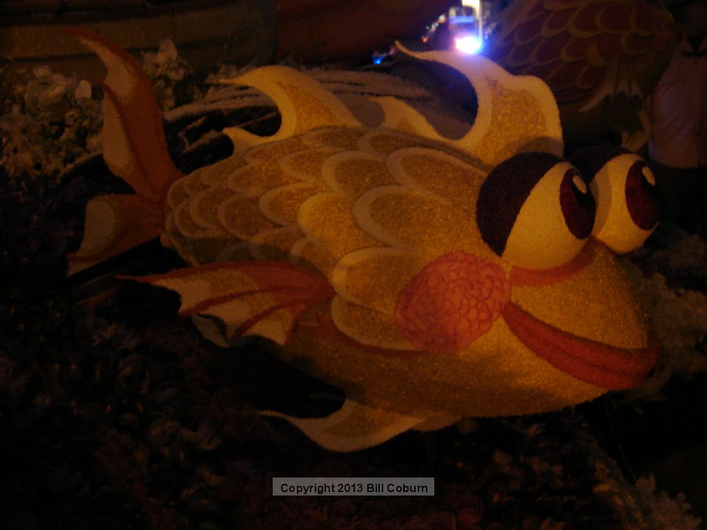 Also, according to the Float Notes, the fish’s “name is Wanda, “Wanda is 100% pure –bred “fantasy fish.” She will be decorated in hot pink, orange and yellow carnations and chrysanthemums with accents of pink grapefruit, oranges and lemons. Each one of her eyeballs is nearly 5 feet in diameter and we estimate her eyelashes are approximately 12” long. She’s one-of-a-kind.”