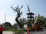 I have more than 40 videos of the removal of the tree, and will be posting a nice long video, when I have time. In the meantime, here’s a short summary. Below the video is a photographic documentation of the removal of an old friend from our midst, after 125 years of being the center of our town. Click to enlarge.