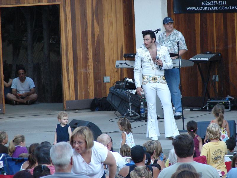For the eighth year in a row, Rotary Club of Sierra Madre sponsored a Concert in the Park, featuring a performance by Harry Shahoian as Elvis. Also on the bill was George Trullinger performing as Buddy Holly.