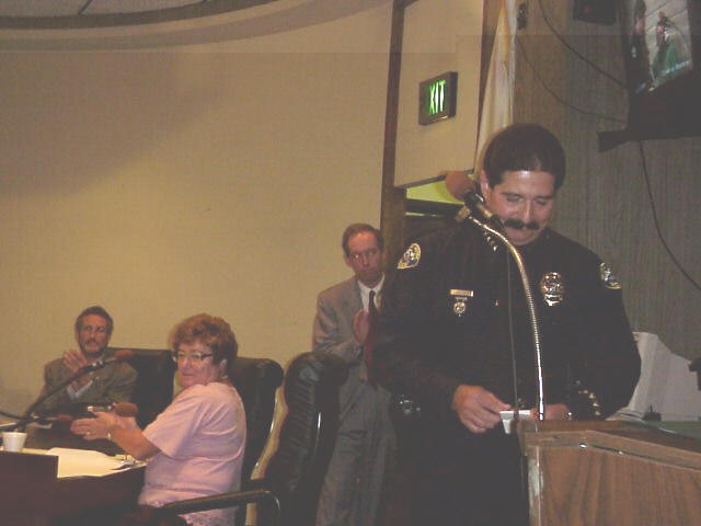 Twenty-eight year Sierra Madre Police Force veteran Lt. Wayne Bailey was sworn in as the new Sierra Madre Chief of Police on Oct. 9th, 2000 at the Sierra Madre City Council Meeting.  A large contingent of Officers observed the ceremony, and Chief Bailey was joined by many members of his family, including sons Kyle and Brandon, who are officers in the Azusa Police Dept. and will now be working for outgoing Sierra Madre Police Chief King Davis.