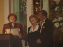 While the guests were finishing up dessert, the entertainment began, featuring the Southern California Lyric Theater Troubadours, performing a variety of standards and doo-wop favorites. After SCLT was done, Mayor Enid Joffe welcomed the new Chamber Board. In past years, Joffe has had the Board of Directors perform a variety of acts, such as blowing on kazoos, or cheering with pom-poms for their favorites in the SC/UCLA rivalry. This year, Joffe took a different tack, asking the guests to fill out cards at their tables with something they like about Sierra Madre, and then asking the Board members to tie that together somehow with the Chamber, which they did with varying degrees of success. The 2008 Board of Directors consists of officers Ron Brandley, president, Bill Coburn, vice-president, Linda Thunes, treasurer, and members Elaine Aguilar, Elizabeth Booth, Karen Keegan, Halcyon Koerber, Matthew Krantz, Gilbert Lucero, George Maurer, Sally Morrison and Lisa Spigai-Perez.