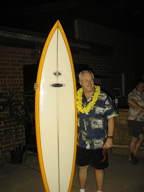 June 28, 2003 Mahalo to the Sierra Madre Surf Club for a Luau That Was Loads of Fun Saturday night, the Sierra Madre Surf Club held its 4th annual Luau, featuring a 16-piece Polynesian Hula show and and a live band. More than 200 people attended the luau, to feast on pulled pork, teriyaki chicken, steamed rice, salad, macaroni salad and rolls. Draft beer from the Sierra Madre Brewing Company2, maitais, and wine were on sale cheap, and everyone seemed to be enjoying themselves. There was a surprisingly large presence of kamali'i (that's Hawaiian for children) at the kid-friendly (hotdogs were served for the kids) luau. My Polynesia of Fountain Valley provided the hula show, with four musicians, 2 male and 5 female adult dancers, and 5 Kamali'i dancers. My Polynesia also provided the feast. After the hula show, a raffle was held, and Dave Choate won a skateboard valued at $200, while Bob Matheson won the $650 Bruce Jones surfboard. When the raffle was over, a band led by local guitarist Dave Osti entertained the crowd for the rest of the evening. Proceeds from the luau will be donated to the softball field restoration fund. We have nearly 5 dozen pictures from the Luau here. All in all, it was a good pa'ina (that's Hawaiian for party), with the only complaint we heard being that it ended too soon!! Click on a picture below to see it full size.