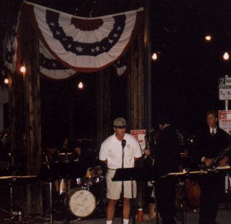The Rotary Club lived up to the expectations of the hundreds who enjoyed last year's dinner in Kersting Court. This year's menu was again barbecued tri-tip, with coleslaw and beans. Tickets were $12.50. Musical entertainment was provided by Swing, Inc. after dinner. There was also a computer set up showing historic photos, including a Lizzie's Trail Inn/Mountain Trail/Muleskinner slideshow, a Sierra Madre historic pictures slideshow (including several pictures from the new Historical Society fundraiser screensaver), and a Sierra Madre School historical photo slideshow. Last updated 9/19/00 For those who've been here before, check the pictures below, as they were changed 10/20/99. For more pictures of the Rotary dinner, dancing and Swing, Inc., follow the link below Rotary Picture