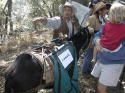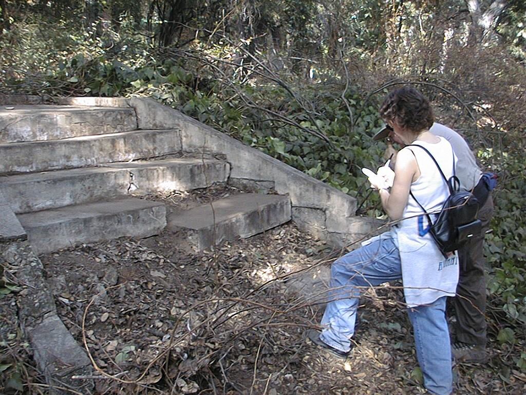 Pioneer Days Hike into History a Terrific Success Saturday, Oct. 4th, several dozen people turned out for the 8th Annual Hike Into History, co-sponsored by Arroyo Seco Medical Group and the Community Services Dept. This year's hike went to the ruins of Fern Lodge, which operated in the Santa Anita Canyon until 1960. In addition to the creation of a special post office for a day, offering special Fern Lodge postal seal, with the posted mail carried out of the canyon by mule train, this year several of the owners of the cabins down in the cabin opened their doors, allowing the hikers a special glimpse into what life was like for the cabin owners of the early 20th century. Several of the cabins appeared to be in condition similar to what they must have been in the 1920s, and surprisingly, several of the homes were in fabulous shape, with modern decor, and all the conveniences of home, except of course, minor conveniences such as electricity, running water, central heating systems (other than fireplaces), and easy access. A few of the homes were for sale, for just under $30,000. This hiker was especially pleased to be allowed to go into photographer E.B. Gray's one-time cabin. San Gabriel mountain author and expert John Robinson was along, answering questions, showing old photos and educating the hikers about the "Golden Age of Hiking". The hike, which is the result of the hard work and seemingly endless energy of longtime Sierra Madre physician Dr. William E. White, was approximately four miles, and was a pleasant way to spend a morning. Kudos to Dr. White, John Robinson, the US Postal Service, Kim Kelly and her mules, Community Services, and the cabin owners who allowed us into their homes. Click on a photo below to make it larger.