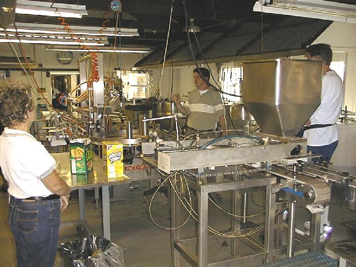 Touring the kitchen at the bottling plant |